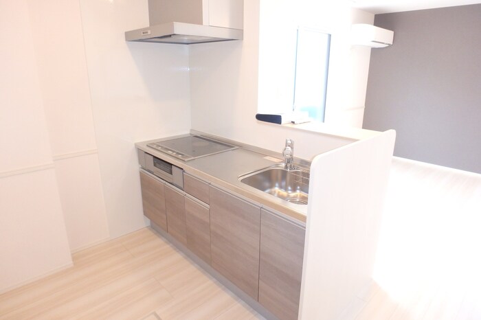 バストイレ別、シューズクローク、照明器具、室内洗濯機置き場、エアコン、フローリング、ベランダバルコニー、脱衣所、洗髪洗面台、床下収納、室内物干し、角部屋、温水洗浄便座、暖房便座、浴室内乾燥機、システムキッチン、対面式キッチン、給湯[ LPガス ]、IH調理器具、CATV(基本ch)、モニタ付インターホン、ペアガラス、ウォークインクローゼット、追い焚き機能、オートロック、宅配ボックス、駐輪場