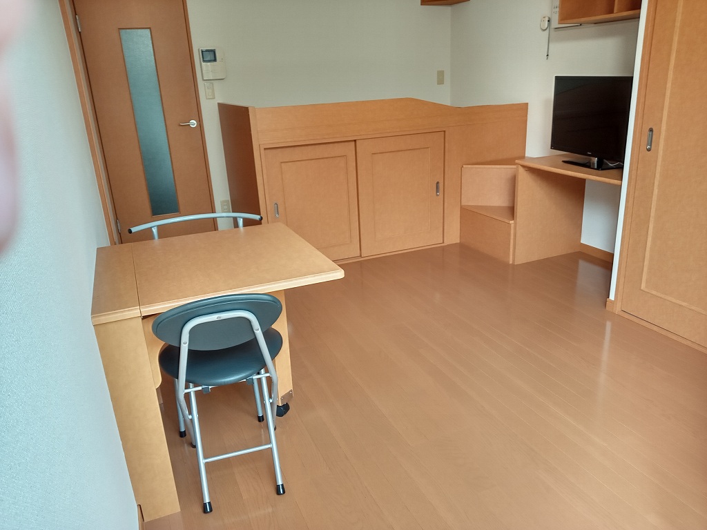 バストイレ別、室内洗濯機置き場、エアコン[ 1基 ]、浴室内乾燥機、CATV(基本ch)、モニタ付インターホン、給湯[ LPガス ]、IH調理器具[ 2ヶ口 ]、下駄箱、冷蔵庫、洗濯機、カーテン、電子レンジ、テレビ、ベッド、テーブル、チェア、宅配ボックス、駐輪場