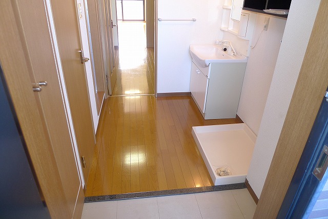 室内洗濯機置き場、独立洗面台も付いています。