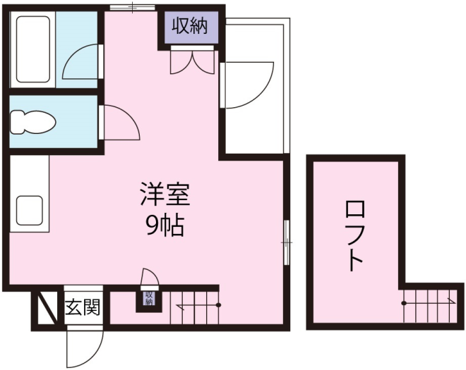 南向きの明るいお部屋に1Fは収納ベット、2Fはロフト付きと便利な使用となっております。