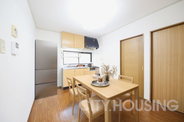 キッチンは、料理がしやすい2口ガスコンロ設置可能な公団型キッチン。