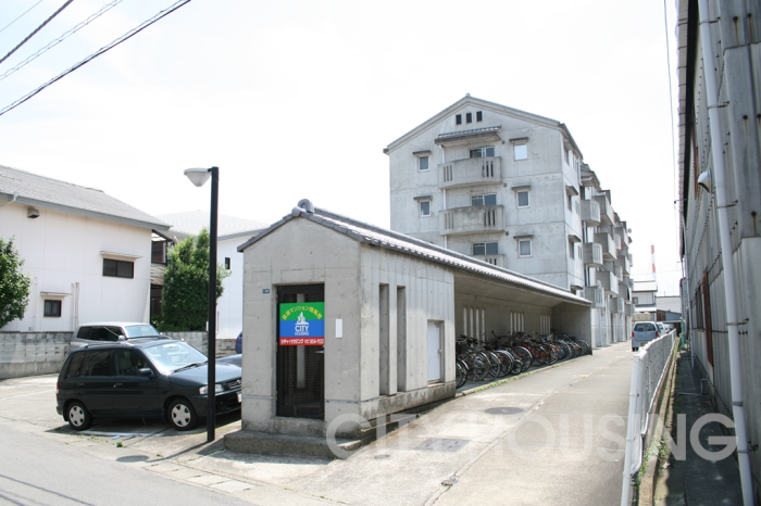 特徴的な自転車小屋は屋根付きになっております。