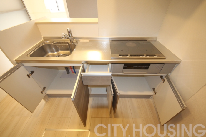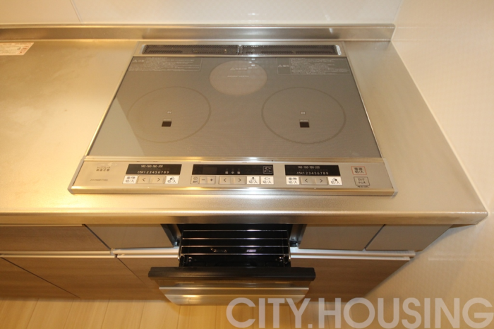 バストイレ別、シューズクローク、照明器具、室内洗濯機置き場、エアコン、フローリング、ベランダバルコニー、脱衣所、洗髪洗面台、床下収納、室内物干し、角部屋、温水洗浄便座、暖房便座、浴室内乾燥機、システムキッチン、対面式キッチン、給湯[LPガス]、IH調理器具、CATV(基本ch)、モニタ付インターホン、ペアガラス