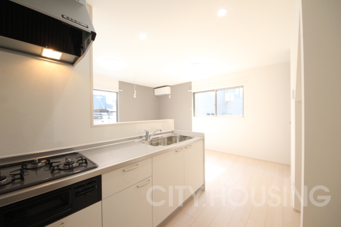バストイレ別、自動湯はり、調理器具、室内洗濯機置き場、エアコン[1基]、フローリング、ベランダバルコニー、下駄箱、脱衣所、洗髪洗面台、独立洗面台、追い焚き機能、温水洗浄便座、暖房便座、浴室内乾燥機、1坪タイプ浴室、システムキッチン、対面式キッチン、給湯[LPガス]、ガス調理器具[3ヶ口]、モニタ付インターホン、ペアガラス、ウォークインクローゼット
