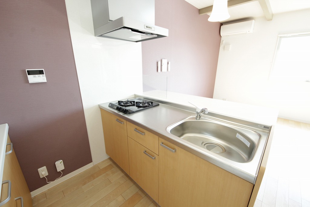 バストイレ別、室内洗濯機置き場、エアコン[ 2基 ]、フローリング、ベランダバルコニー、南向き、下駄箱、脱衣所、洗髪洗面台、照明器具、自動湯はり、角部屋、追い焚き機能、浴室内乾燥機、システムキッチン、対面式キッチン、給湯[ LPガス ]、ガス調理器具[ 2ヶ口 ]、CATV(基本ch)、モニタ付インターホン、温水洗浄便座、オートロック
