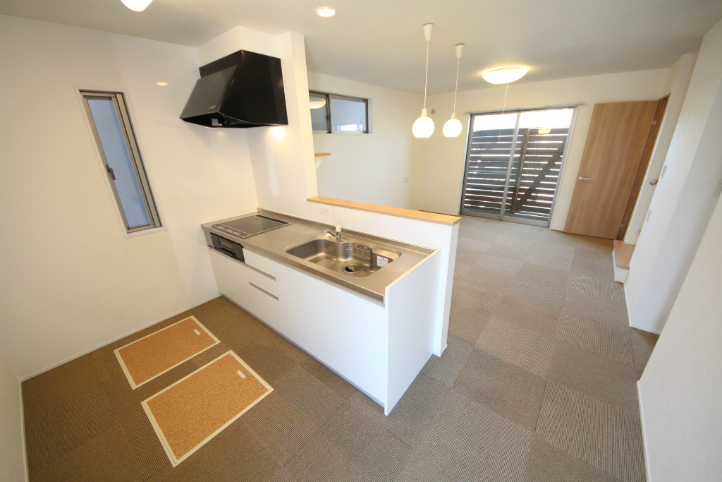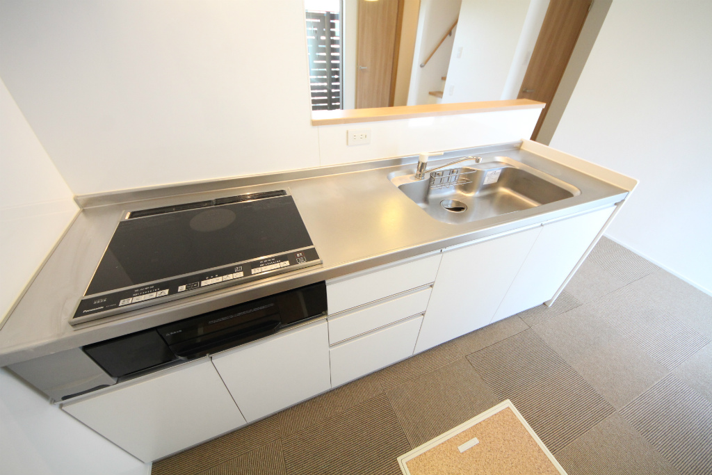 バストイレ別、室内洗濯機置き場、ベランダバルコニー、南向き、独立洗面台、温水洗浄便座、システムキッチン、対面式キッチン、給湯[ LPガス ]、IH調理器具[ 2ヶ口 ]、CATV(基本ch)、モニタ付インターホン、下駄箱、床下収納