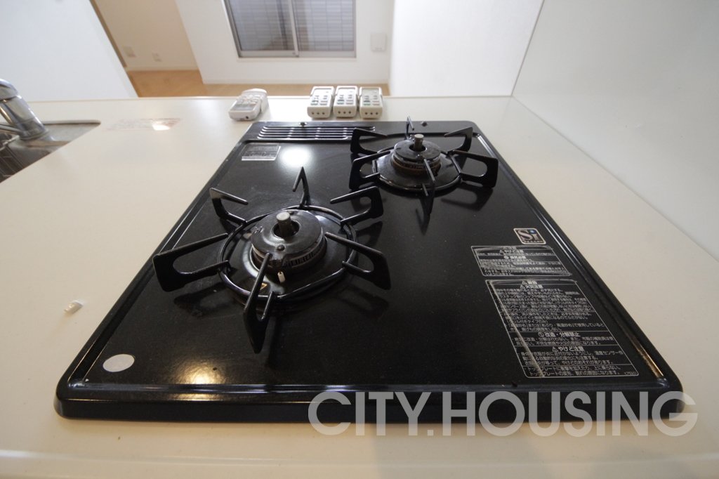 バストイレ別、室内洗濯機置き場、エアコン[ 1基 ]、ベランダバルコニー、下駄箱、脱衣所、照明器具、自動湯はり、角部屋、追い焚き機能、温水洗浄便座、システムキッチン、対面式キッチン、給湯[ LPガス ]、ガス調理器具[ 2ヶ口 ]、CATV(基本ch)、モニタ付インターホン、洗髪洗面台、駐輪場
