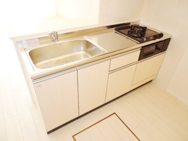 バストイレ別、室内洗濯機置き場、エアコン[ 1基 ]、フローリング、ベランダバルコニー、下駄箱、脱衣所、洗髪洗面台、照明器具、自動湯はり、追い焚き機能、温水洗浄便座、浴室内乾燥機、システムキッチン、対面式キッチン、給湯[ LPガス ]、ガス調理器具[ 2ヶ口 ]、CATV(基本ch)、モニタ付インターホン、床下収納
