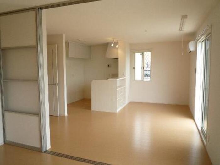 リビングと洋室の仕切りはスライド式。リビングと洋室をつなげるのも素敵ですね。