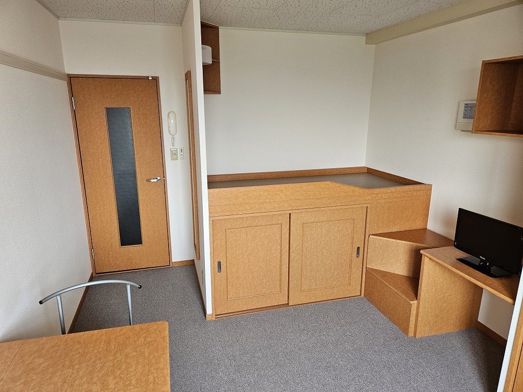 バストイレ別、室内洗濯機置き場、エアコン[ 1基 ]、浴室内乾燥機、IH調理器具[ 2ヶ口 ]、CATV(基本ch)、冷蔵庫、洗濯機、カーテン、電子レンジ、テレビ、下駄箱、ベッド、テーブル、チェア、給湯[ LPガス ]、宅配ボックス、駐輪場