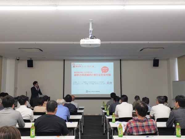 第二部は弊社経営戦略室 部長の川角より、「閑散期でも収益が上がる新たな空室対策」と題しまして、現在の賃貸業界の大きな動きから、今後の収益チャンスとなる着目するべき点など、今大きく変わりつつある賃貸業界の現状をご報告させていただきました。