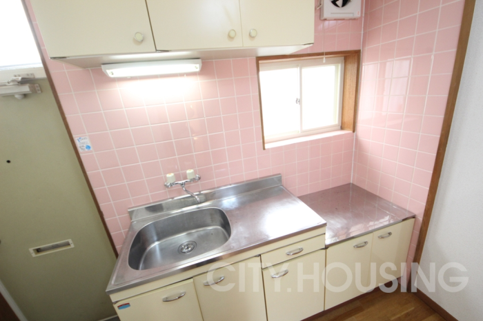 徳島市南昭和町にある、小窓付きで明るいキッチンを備えた、単身1K物件です。