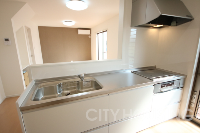 広々としたシステムキッチンはお子様の様子を見ながらお料理ができます。
