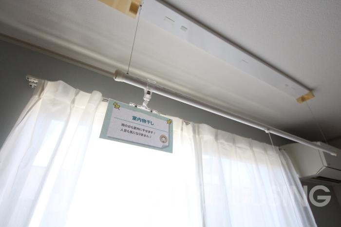 洋室には雨の日でも安心の室内物干しがあります。